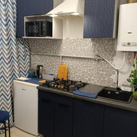 Кухня с газом и полным комплектом техники (холодильник, плита).