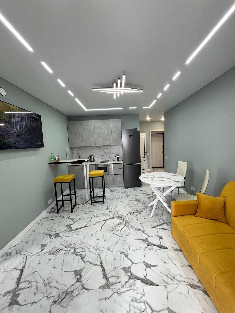 Особенности:Стильный и современный ремонт выполнен из качественных материалов.Уютная кухня с современными бытовыми приборами и просторной обеденной зоной.Светлая гостиная с видом на город, идеально подходящая для отдыха и встреч.Уютная спальня с уютным интерьером.Современная ванная комната с дизайнерской сантехникой.Большие окна и балкон — отличная возможность любоваться закатом или видом ночного города.