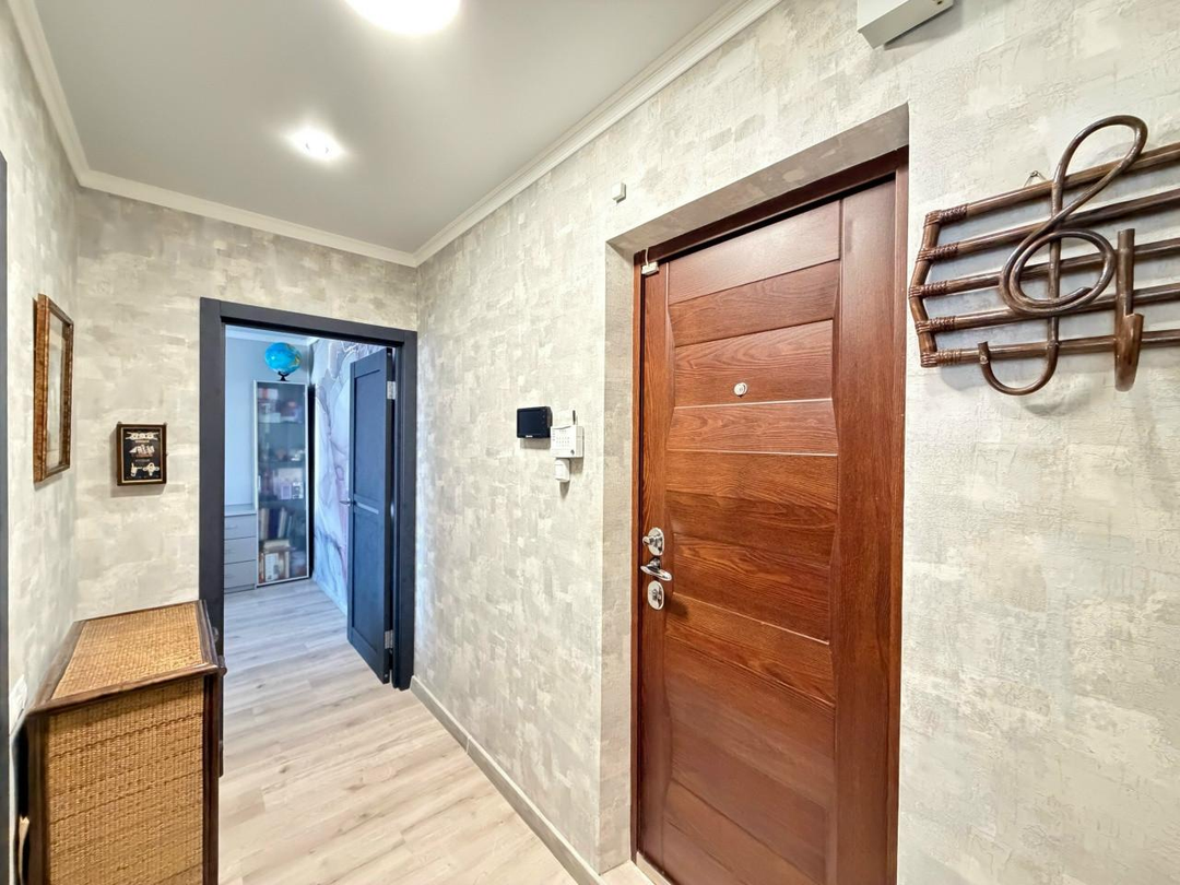 Для безопасности и комфорта жильцов в квартире установлены видеодомофон и сигнализация.