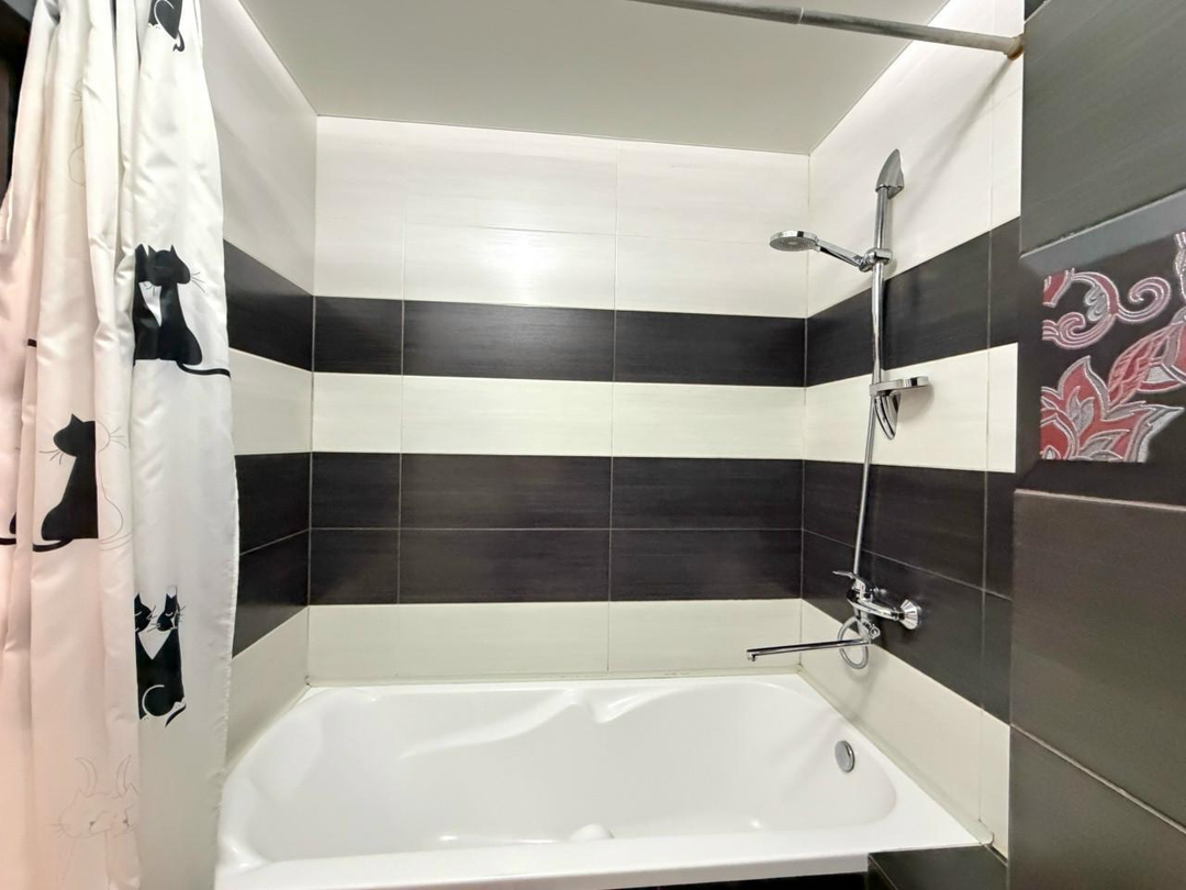 Санузел совмещенный, выполнен в современном стиле.