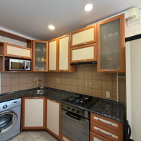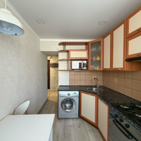 Новым собственникам остается: двуспальная кровать , гардеробная система в комнате, кухонный гарнитур, варочная поверхность, духовой шкаф, холодильник, стиральная машинка, диван, рабочий стол, шкаф с тумбой.