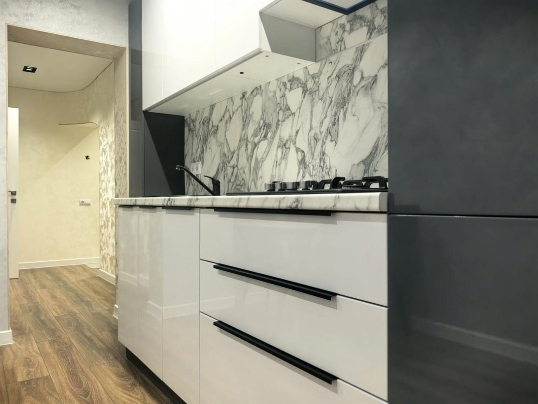 Кухня, выполненная в современном стиле, оснащена встроенной техникой от ведущих производителей, что позволит вам готовить с удовольствием. Все детали продуманы до мелочей: от функциональной рабочей зоны до удобной системы хранения.