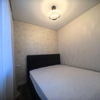 Спальня оборудована просторной двуспальной кроватью с ортопедическим матрасом Аскона, гарантирующим здоровый и крепкий сон. Продуманное освещение и нейтральная цветовая гамма создают атмосферу релаксации и спокойствия.