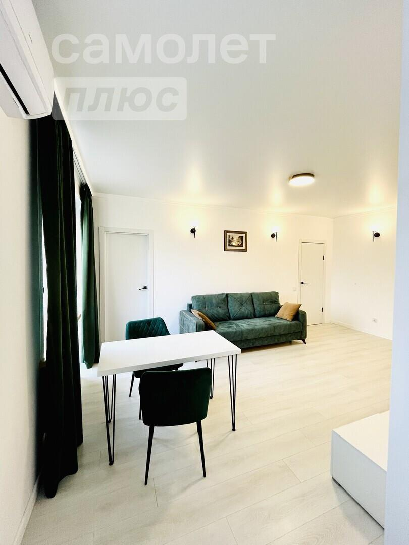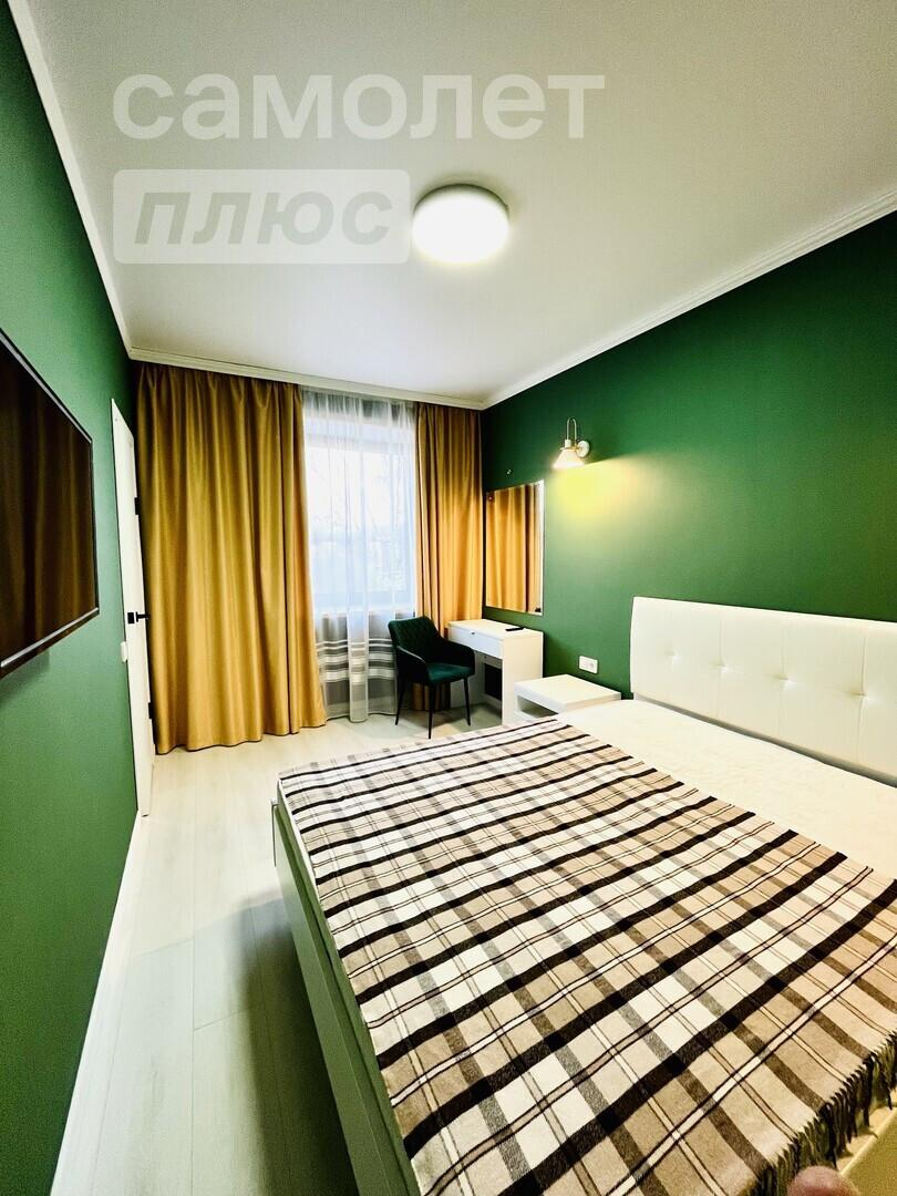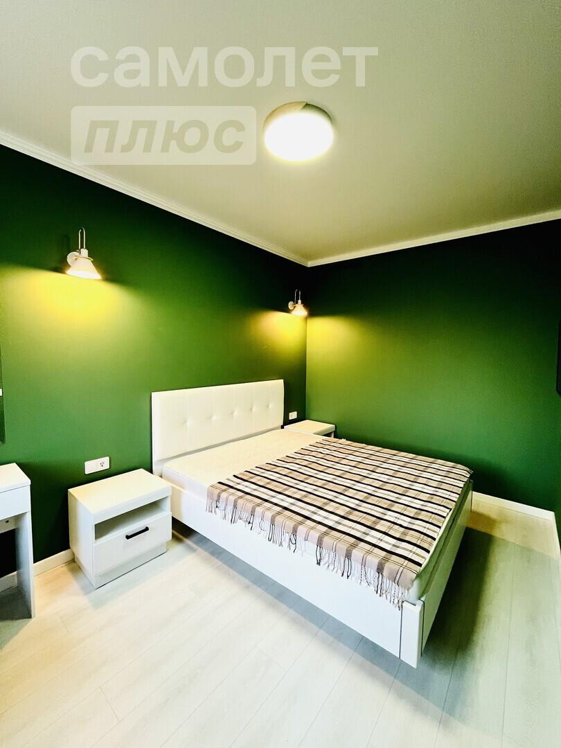 В квартире выполнен дизайнерский ремонт в светлых тонах, есть отдельная гардеробная со встронными шкафами.