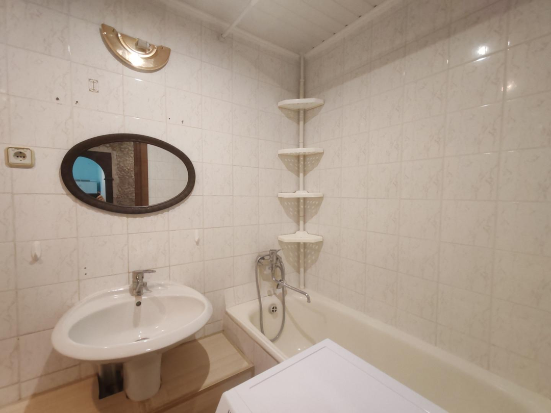 Ванна и туалет (совмещены): Кафель до потолка, на полу плитка, новые пластиковые трубы.