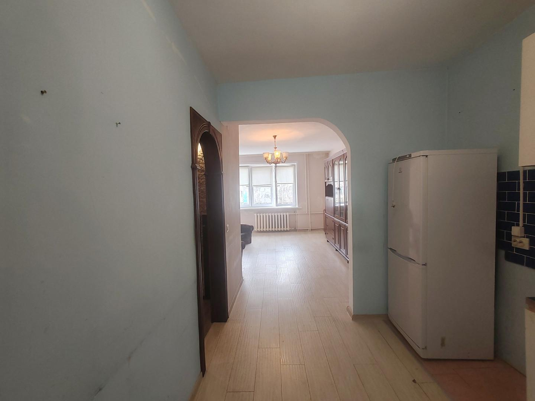 Кухня-гостиная (совмещенная): Стены под покраску, фартук выложен плиткой, на полу ламинат. Возможность установки двери.