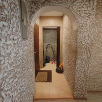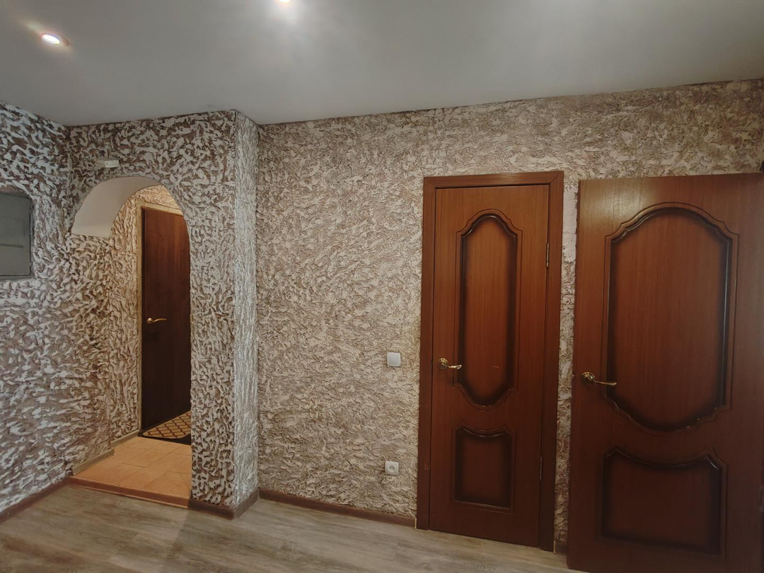 Коридор: На полу ламинат, стены отделаны декоративной штукатуркой, подвесной потолок.