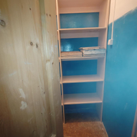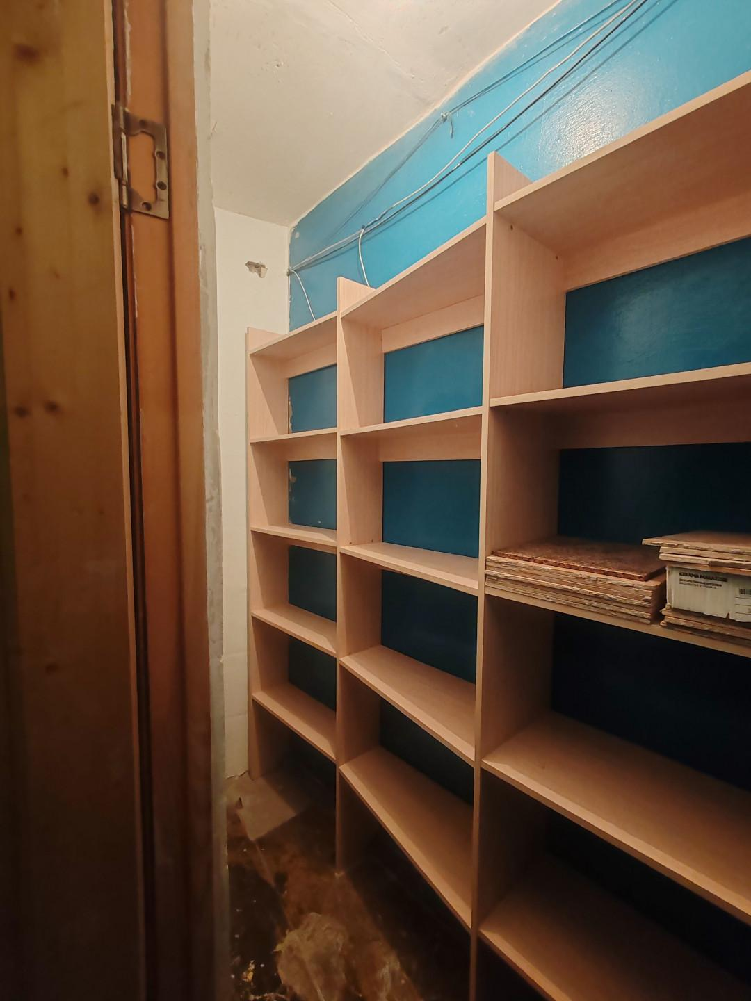 Кладовка: Отдельный вход, пристроена к квартире, оборудована стеллажами.