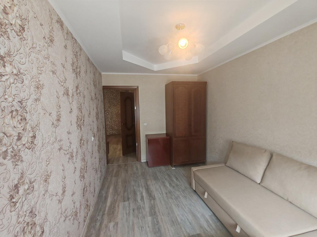 Комната: Стены оклеены обоями, подвесной потолок, пластиковые окна, ламинат.