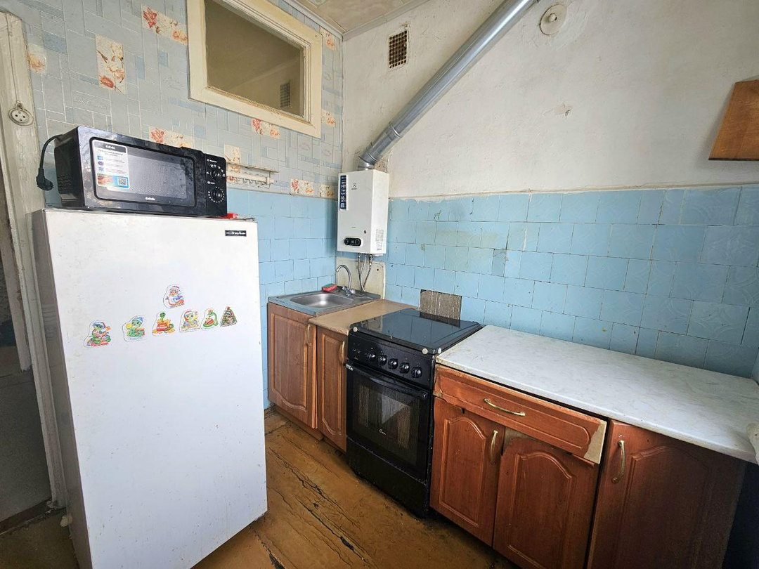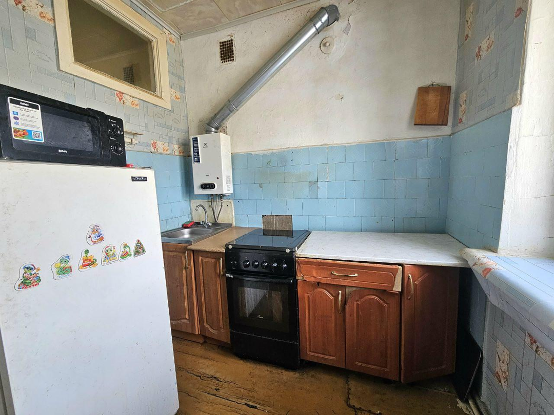 О квартире:Площадь: 45.2 м², жилая — 30.3 м².Этаж: 2/2 (кровля новая). Окна выходят в тихий, зелёный двор.Высота потолков: 2,7 мОтопление: газовый котел Electrolux + центральная котельная рядомПланировка: Санузел совмещённый, есть вместительная кладовая.Состояние: Квартира требует ремонта.Год капремонта дома: 2022