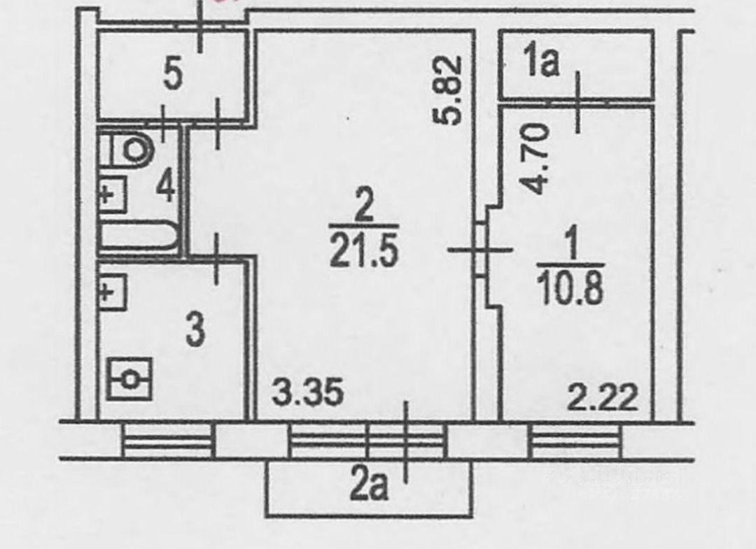 Общей площадью 45.2 кв. м в монолитном доме, построенном в 1963 году.