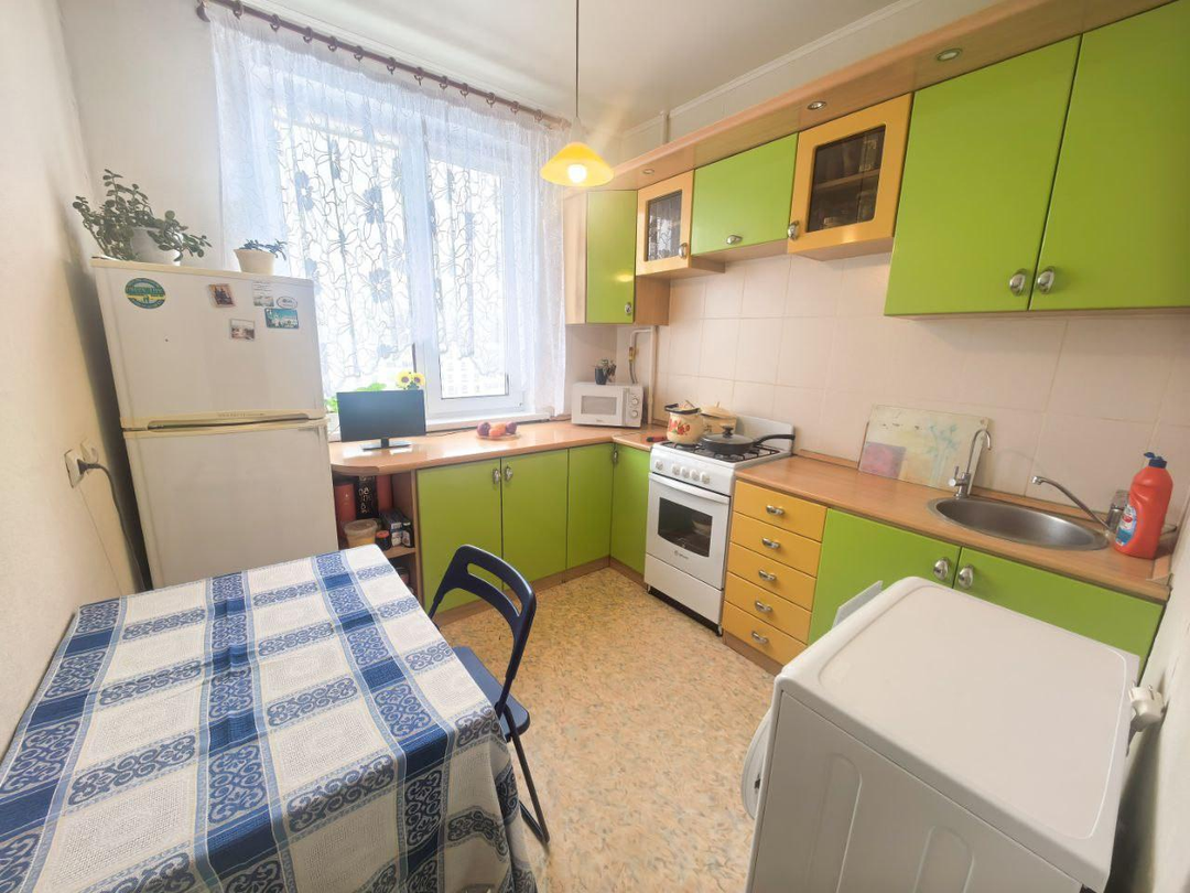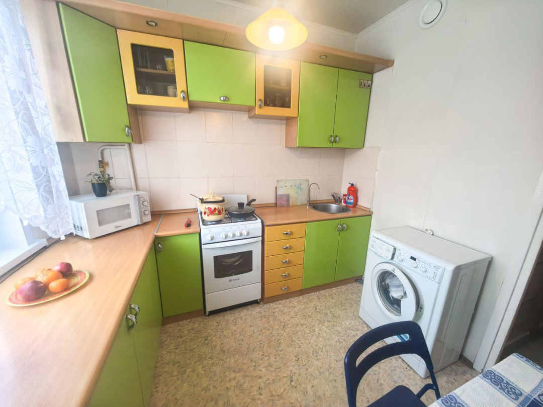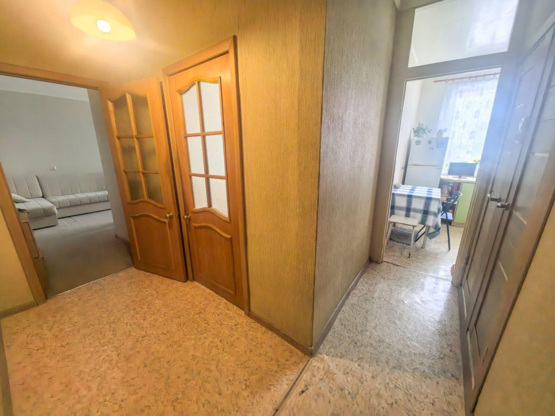 Восьмой этаж. Не угловая. Металлическая входная дверь. Просторная прихожая. Изолированные, светлые комнаты. Гардеробная. Раздельный с/узел. Застекленная лоджия. Пластиковые окна. На полу линолеум и ковролин. Потолок покрашен. На стенах качественные обои. В квартире сделан косметический ремонт. Свежая сантехника. Счетчики на воду. Заменена эл. проводка. Новые отопительные батареи. Квартира уютная. Теплая. Не требует дополнительных финансовых вложений. Полностью укомплектована всей необходимой мебелью и бытовой техникой: холодильник, стиральная машина, посудомойка, кондиционер. Все это, в качестве бонуса, остается новым собственникам.