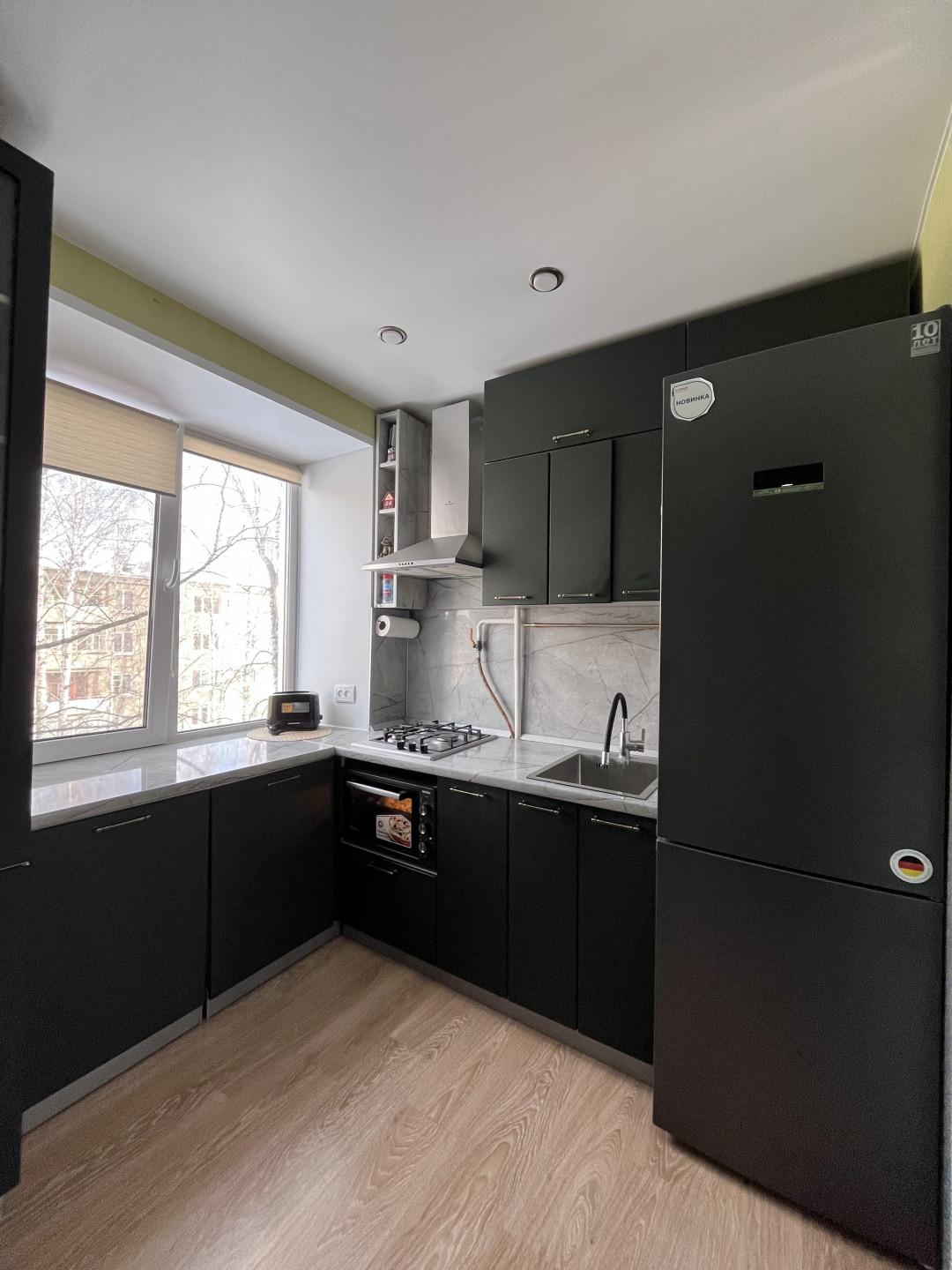Встроенная кухня, продуманная до мелочей, для удобства пользования.