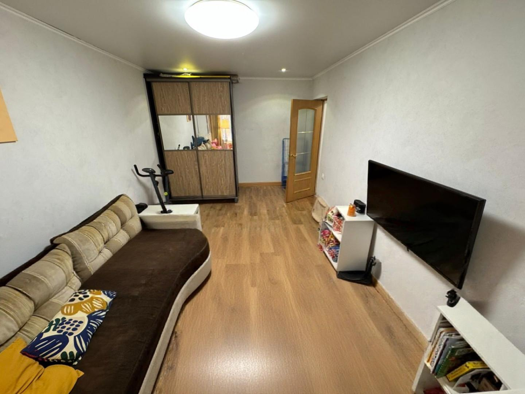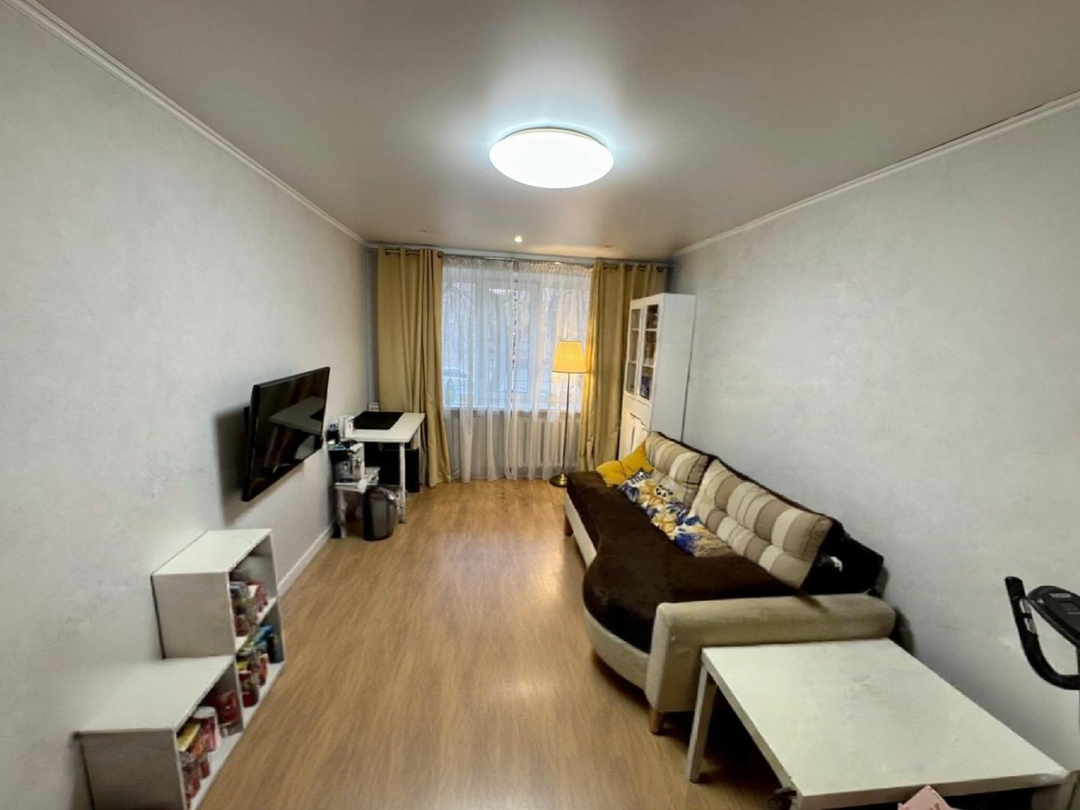 Общая площадь квартиры достаточная, чтобы в ней разместилась семья и составляет 45,4 кв. м, что является оптимальным вариантом для комфортного проживания. Окна во двор и на улицу. Комнаты раздельные, санузел раздельный. Балкон остеклен. Есть гардеробная. Все счетчики новые.