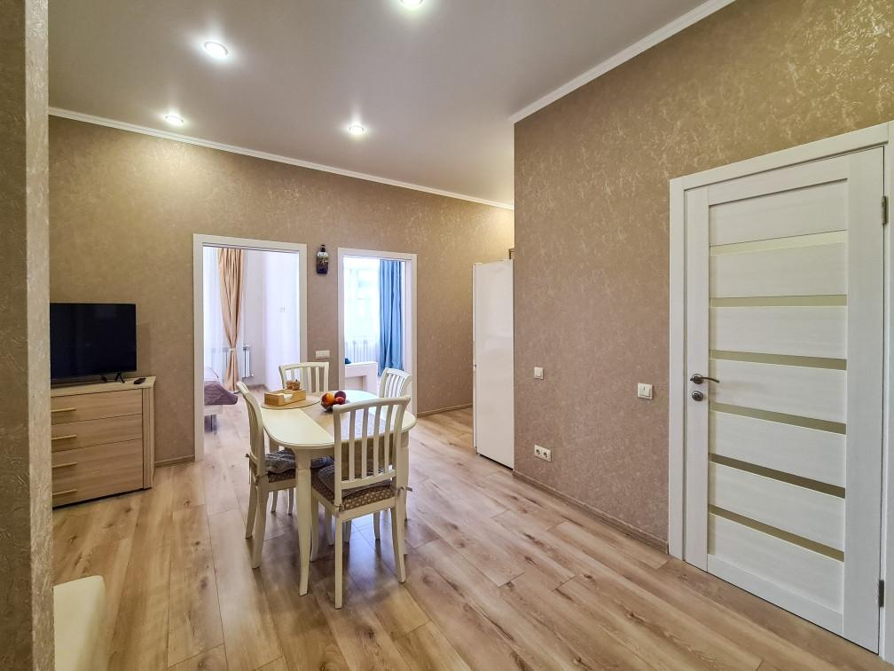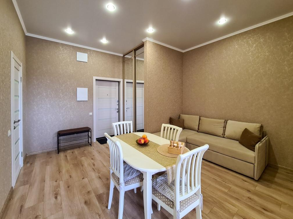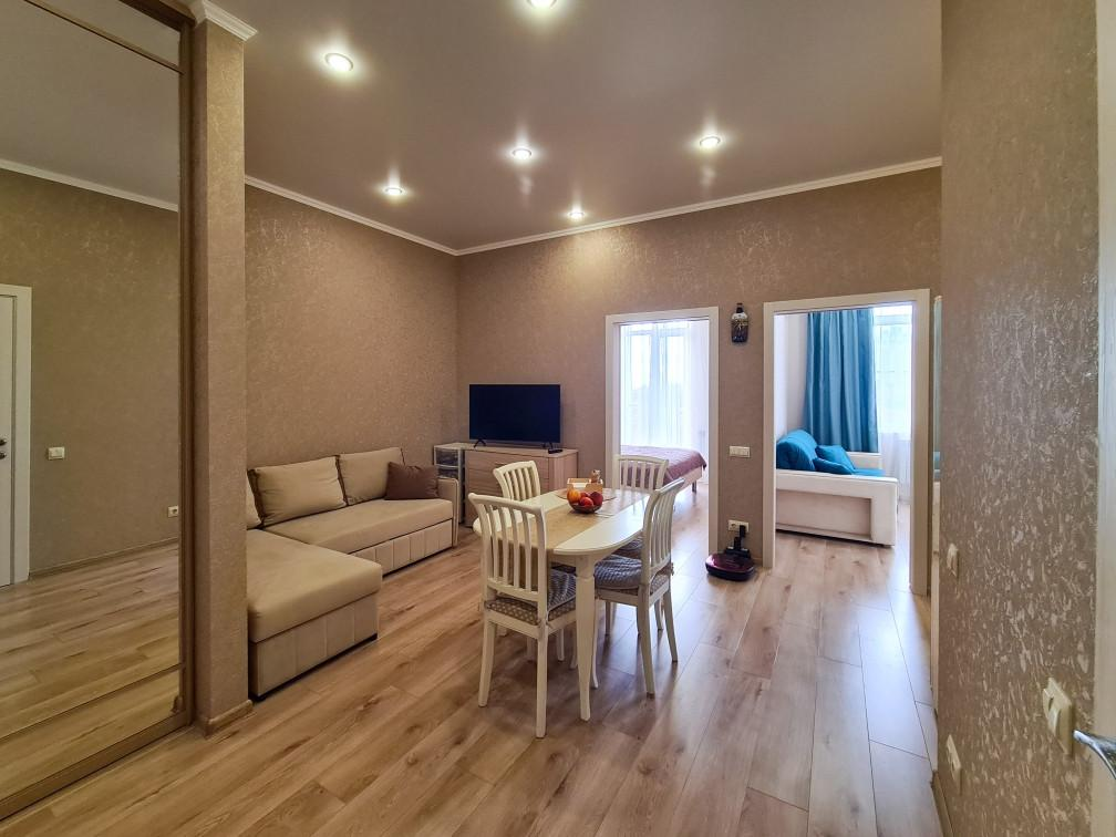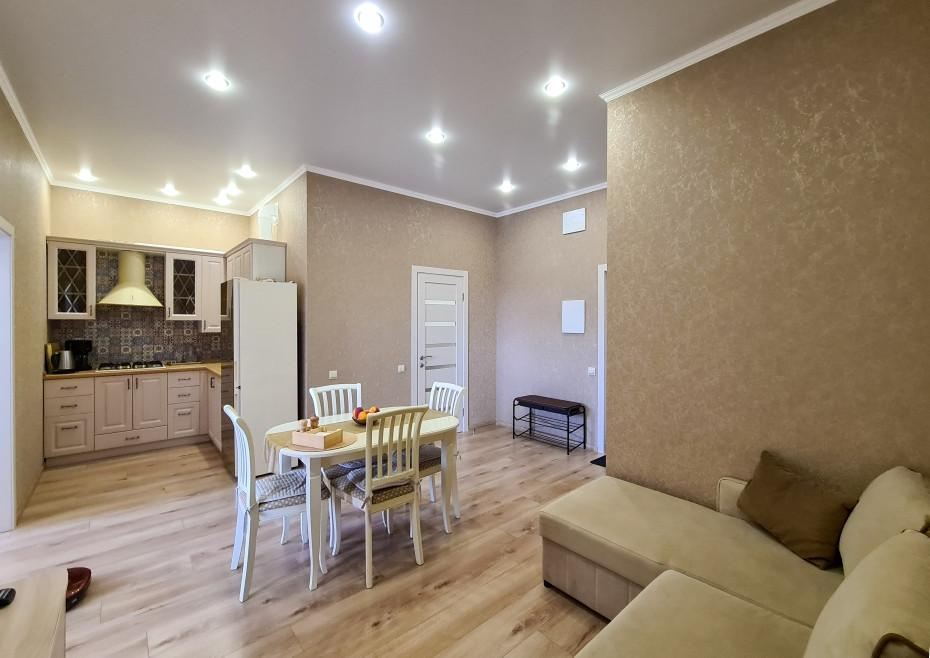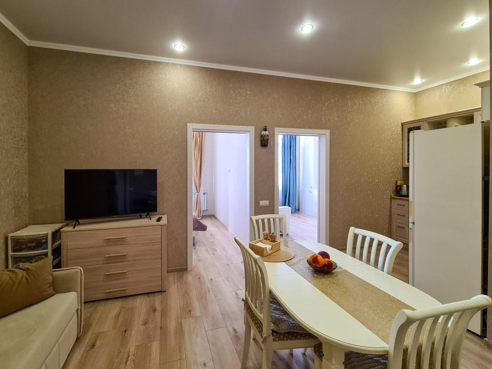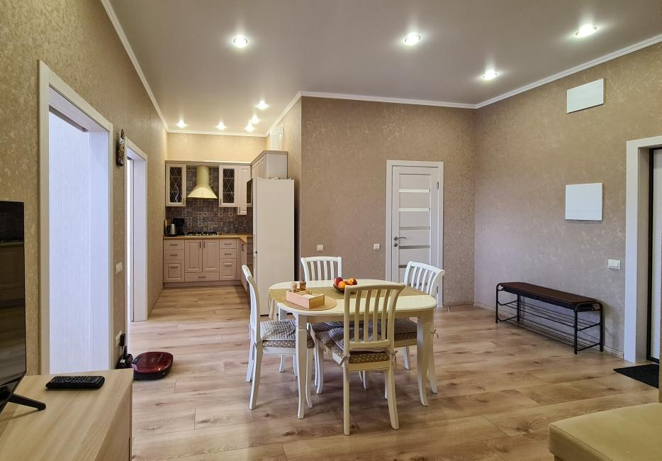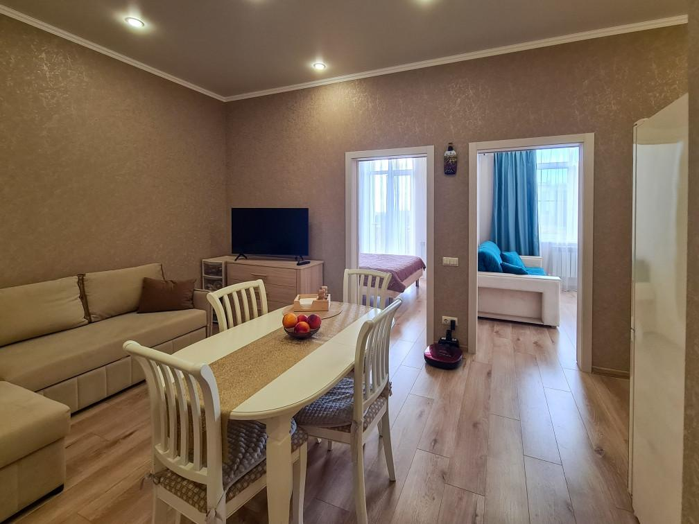 Квартира расположена на пятом этаже шестиэтажного кирпично-монолитного дома, современный благоустроенный жилой комплекс Черноморский 2 построен в 2021 году. Автономное отопление, накопительные баки, которые обеспечивают бесперебойную подачу воды круглосуточно круглогодично. В квартире выполнен евроремонт из качественных материалов, теплые полы, вся мебель и техника остаются в подарок!
