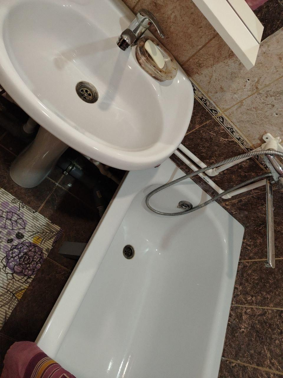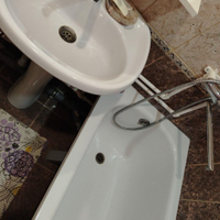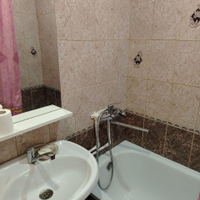 Санузел совмещенный в плитке, новый полотенце сушитель.