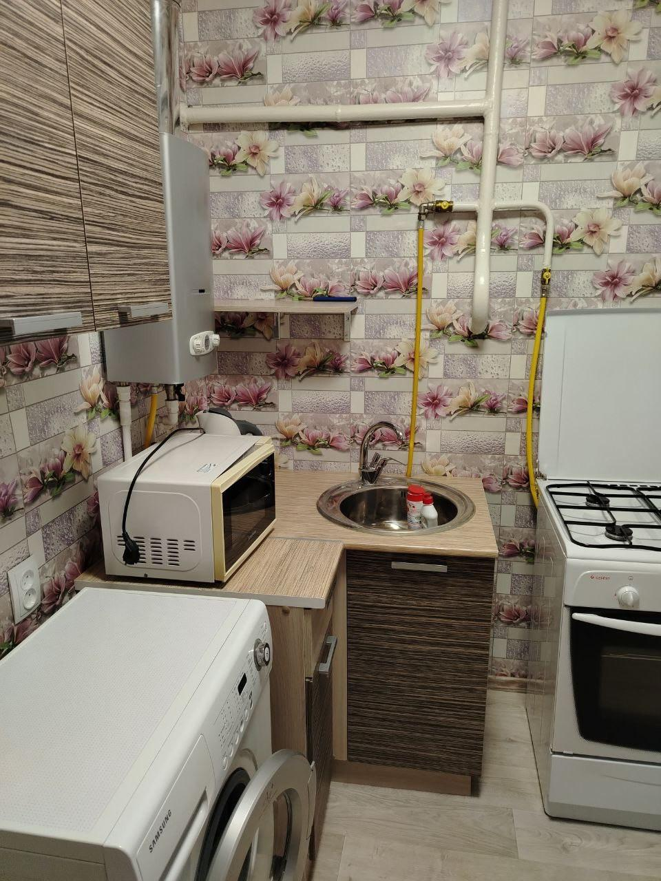 Кухня с новой газовой колонкой.
