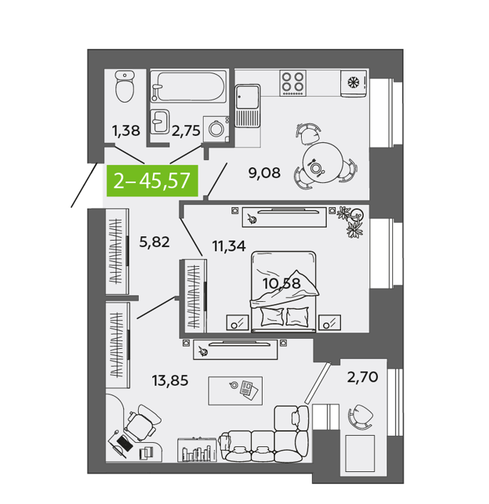 45,6 м²
