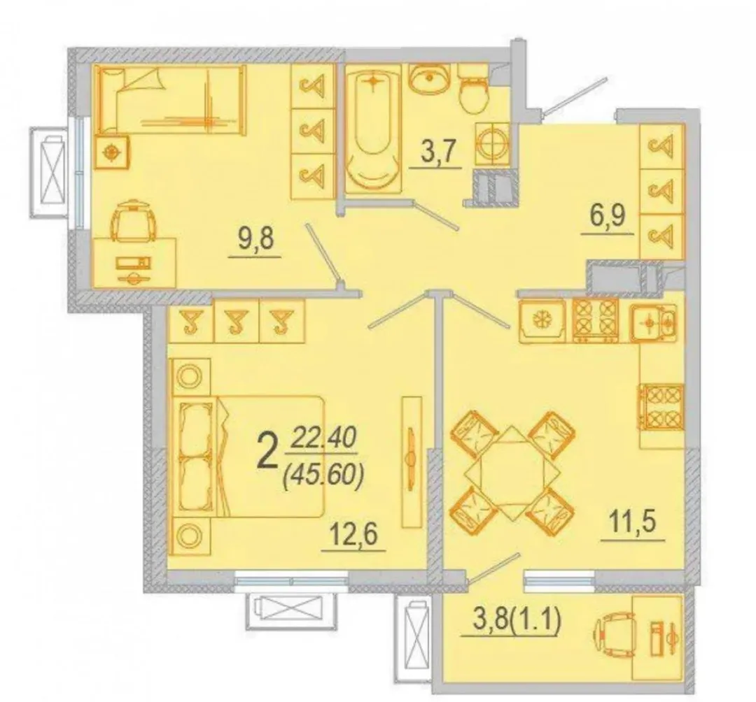 45,6 м²