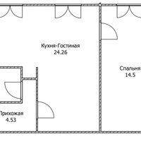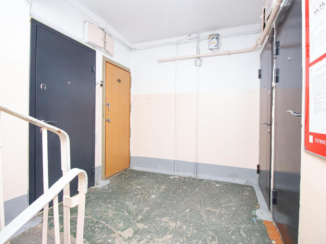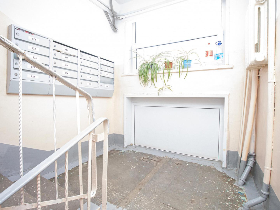 Квартира расположена на 1 этаже 5-этажного дома. Общая площадь — 45,6 кв.м.