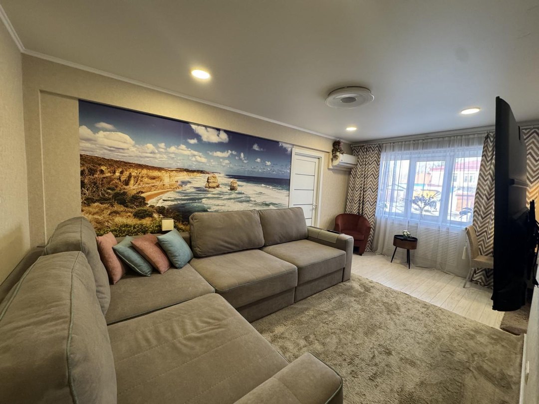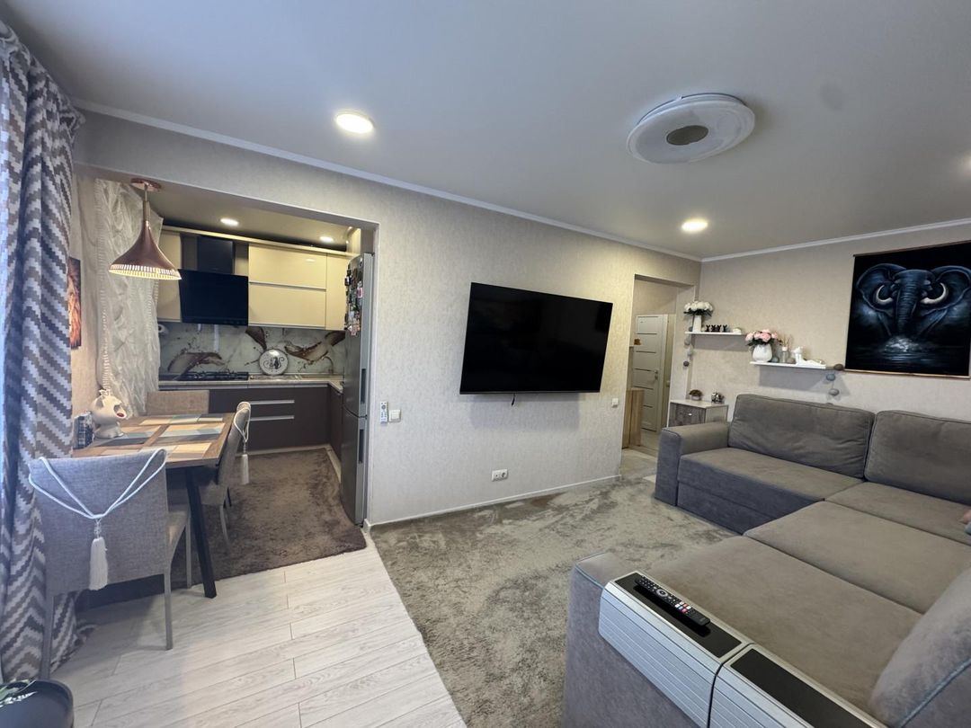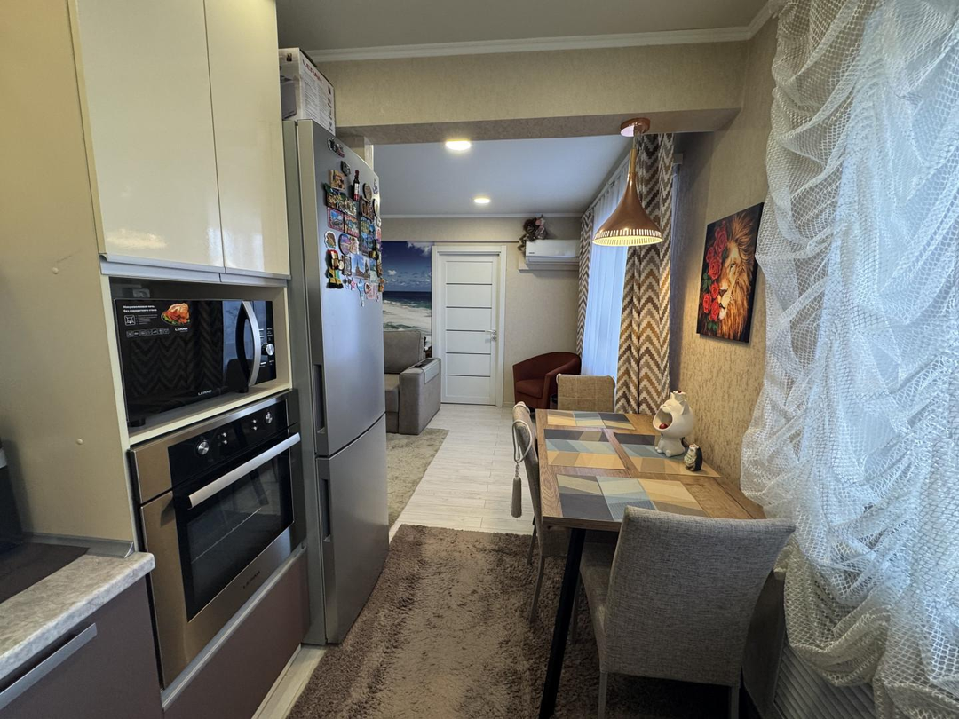 Квартира с качественным современным ремонтом. Кухня совмещена с гостиной, что сoздает удобное пространство для жизни.