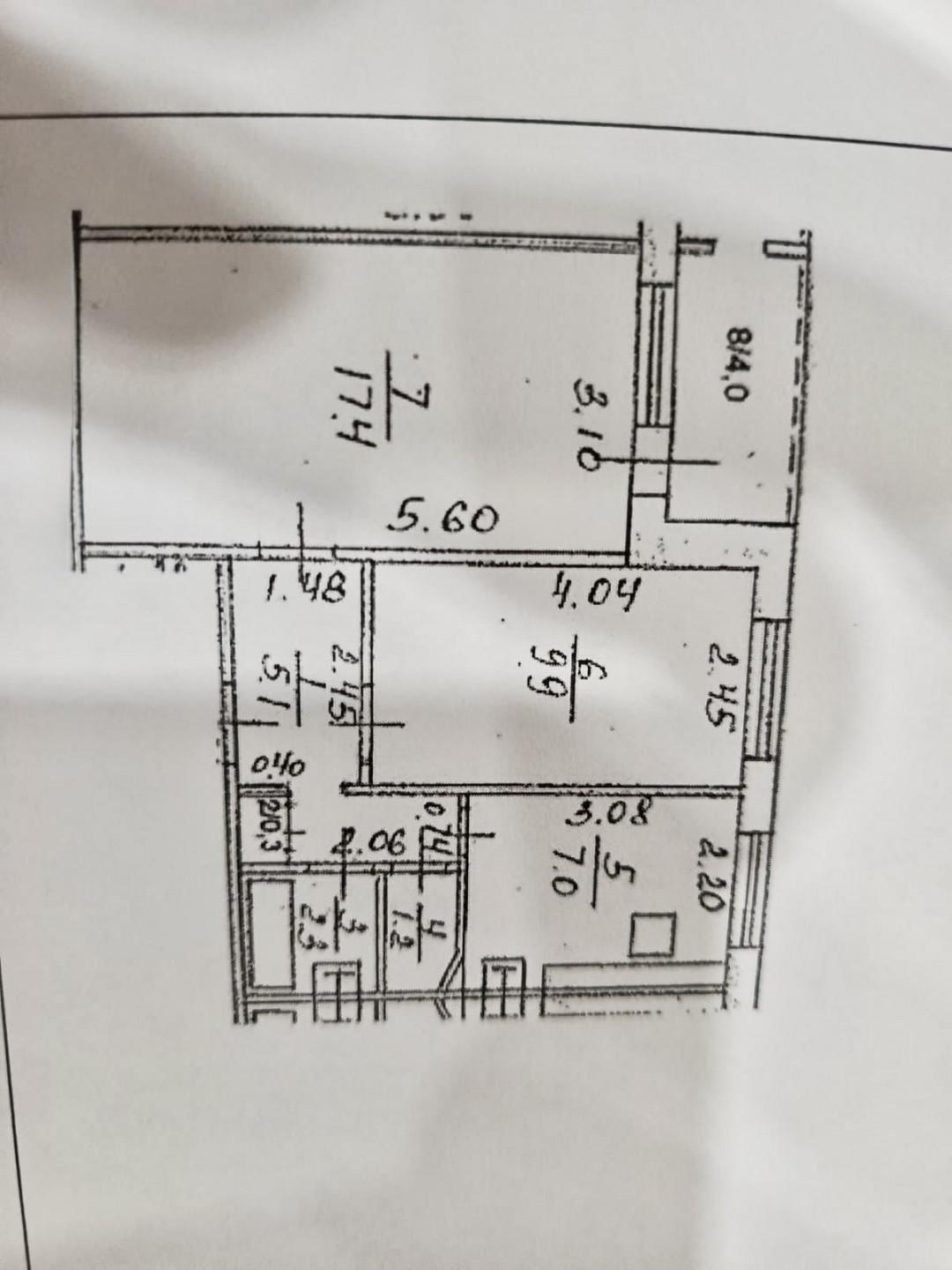 Общая площадь квартиры составляет 43,3 кв. м, кухня - 7 кв. м.