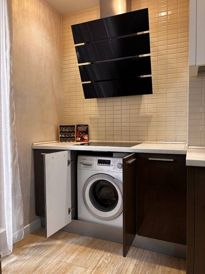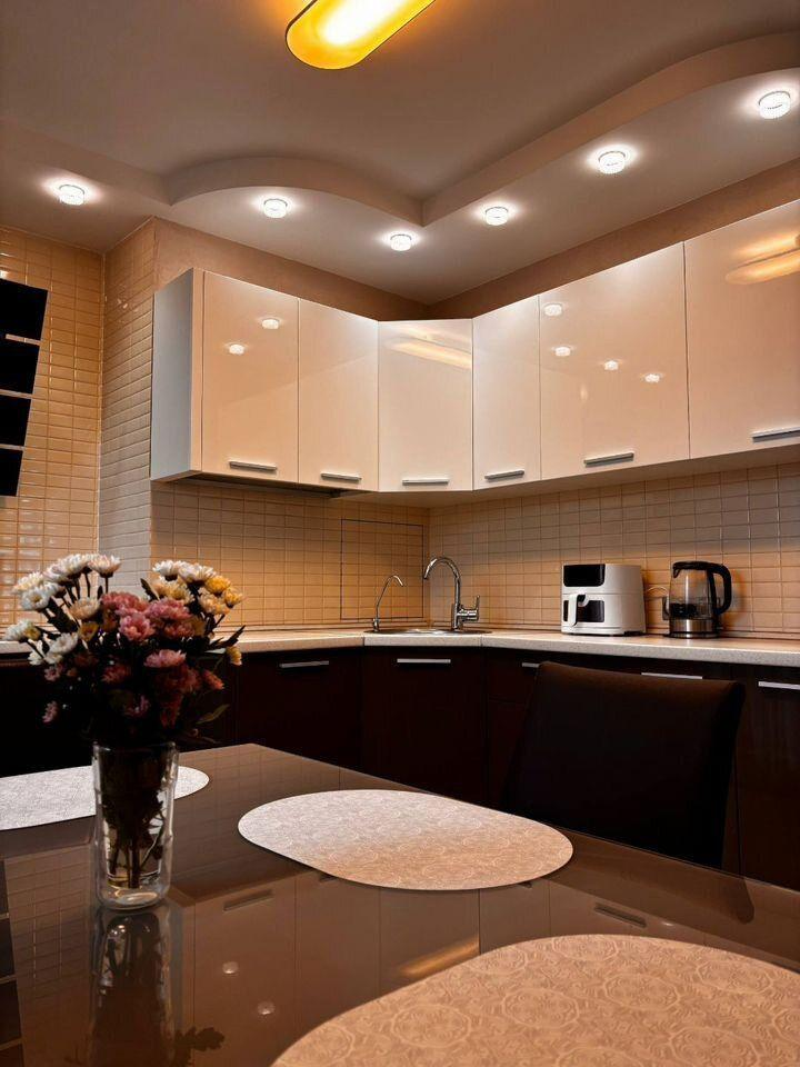 - Светлая кухня – удобная планировка для комфортного приготовления еды.
