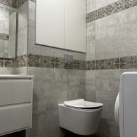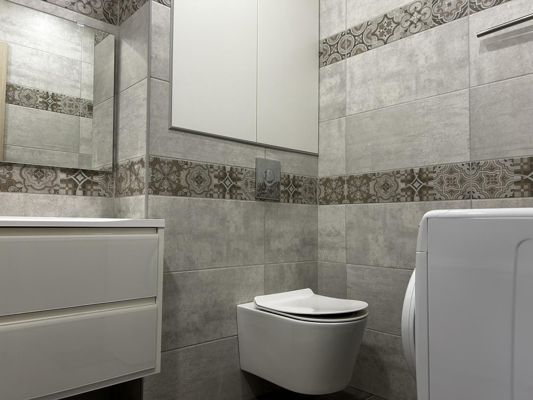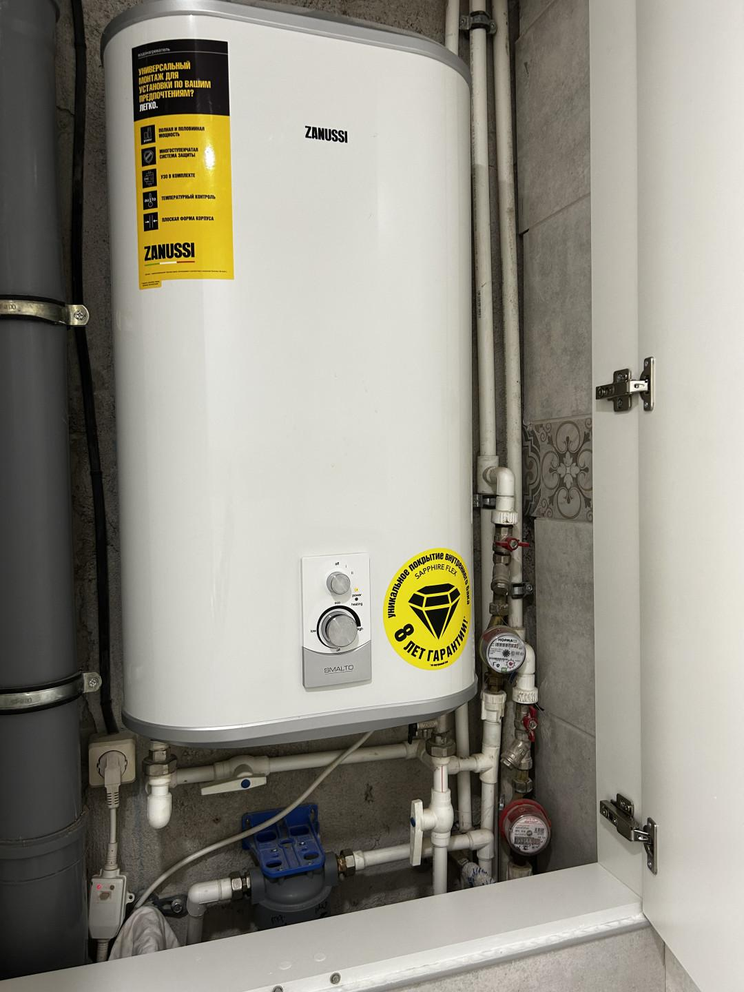 8. Санузел совмещен, на полу керамогранит, установлен унитаз инсталляция, водонагреватель 50 литров
