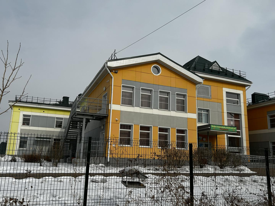 2. Безопасный двор для малышей, с большой детской площадкой. Коробка- для активных игр летом, зимой ее заливают, и родители, вместе с детьми, катаются на коньках. Садик Тигренок располагается в 15 метрах от дома.