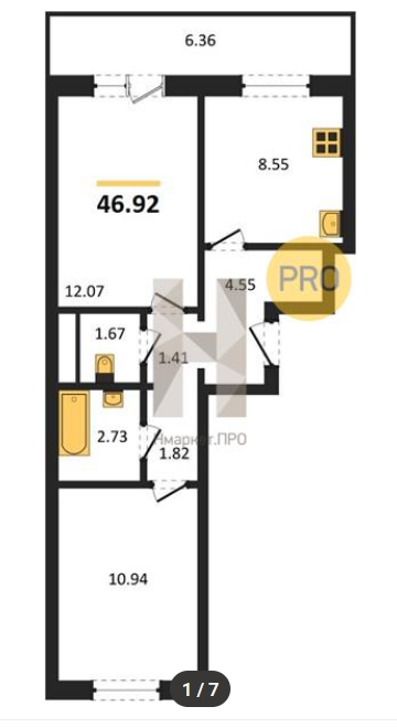 -отдельная кухня 8.55кв.м., комната 12кв.м., комната 12кв.м.