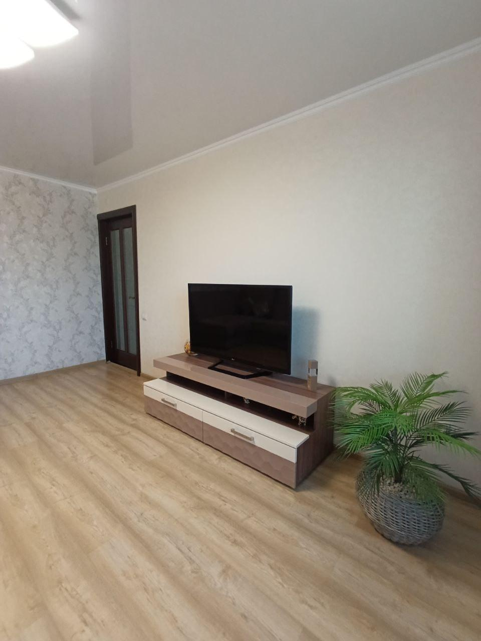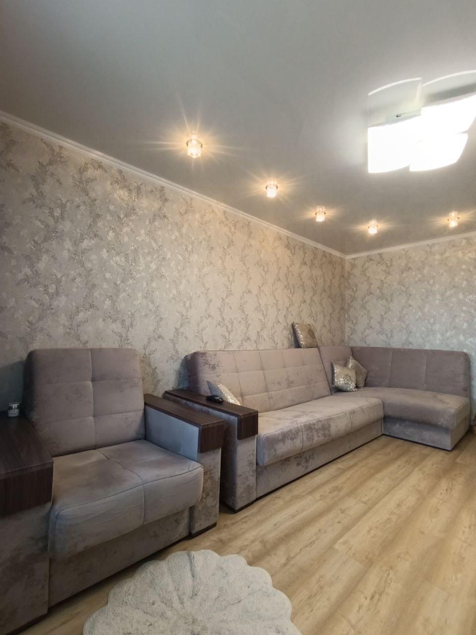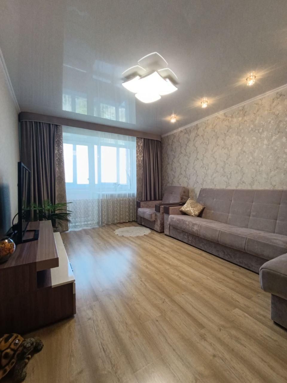 В квартире сделан современный ремонт.На стенах стильные обои.На полу - ламинат.Потолки натяжные .Установлены качественные пластиковые окна.Межкомнатные двери хорошего качества.Застеклённая лоджия.Раздельный санузелВ подарок остаётся: кухонный гарнитур, прихожая, спальня.Большая автопарковка во дворе дома,Детская площадка.