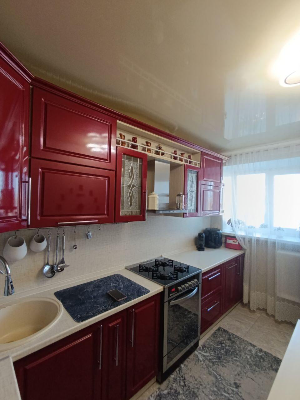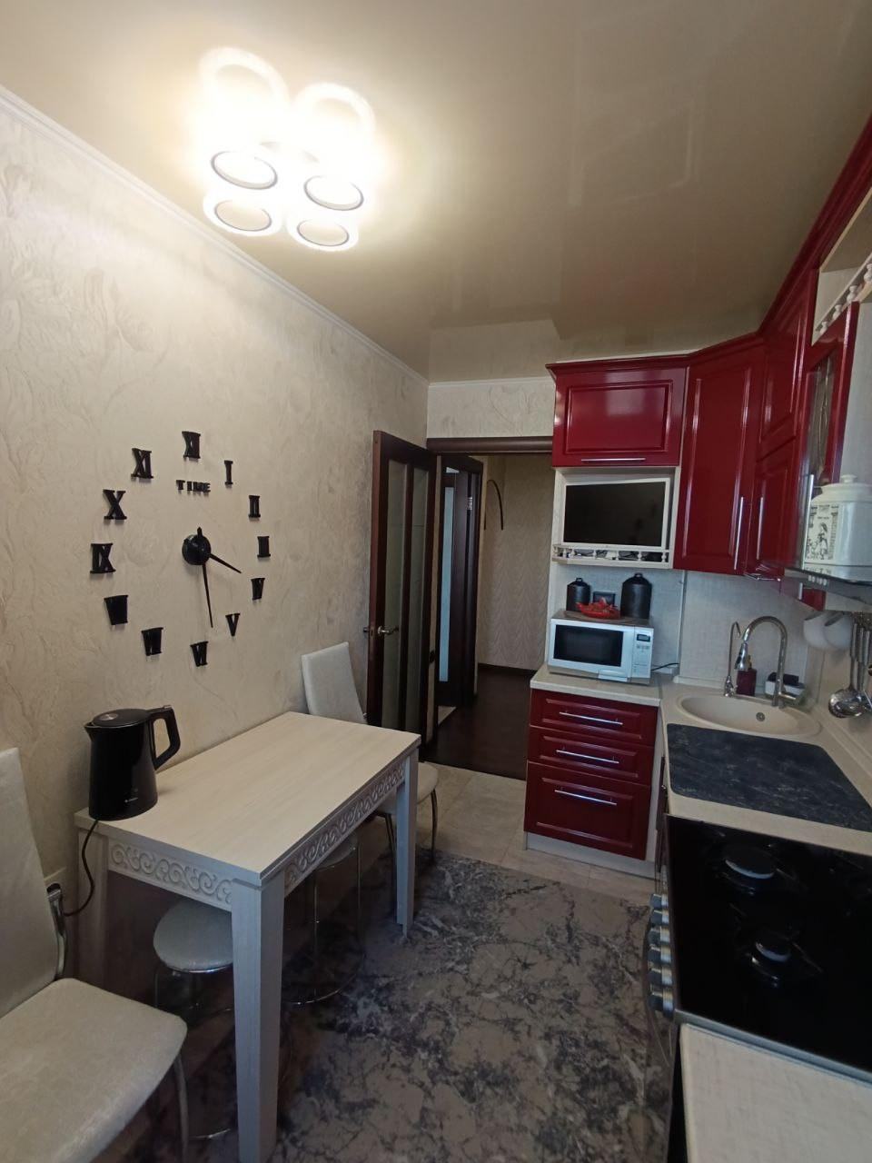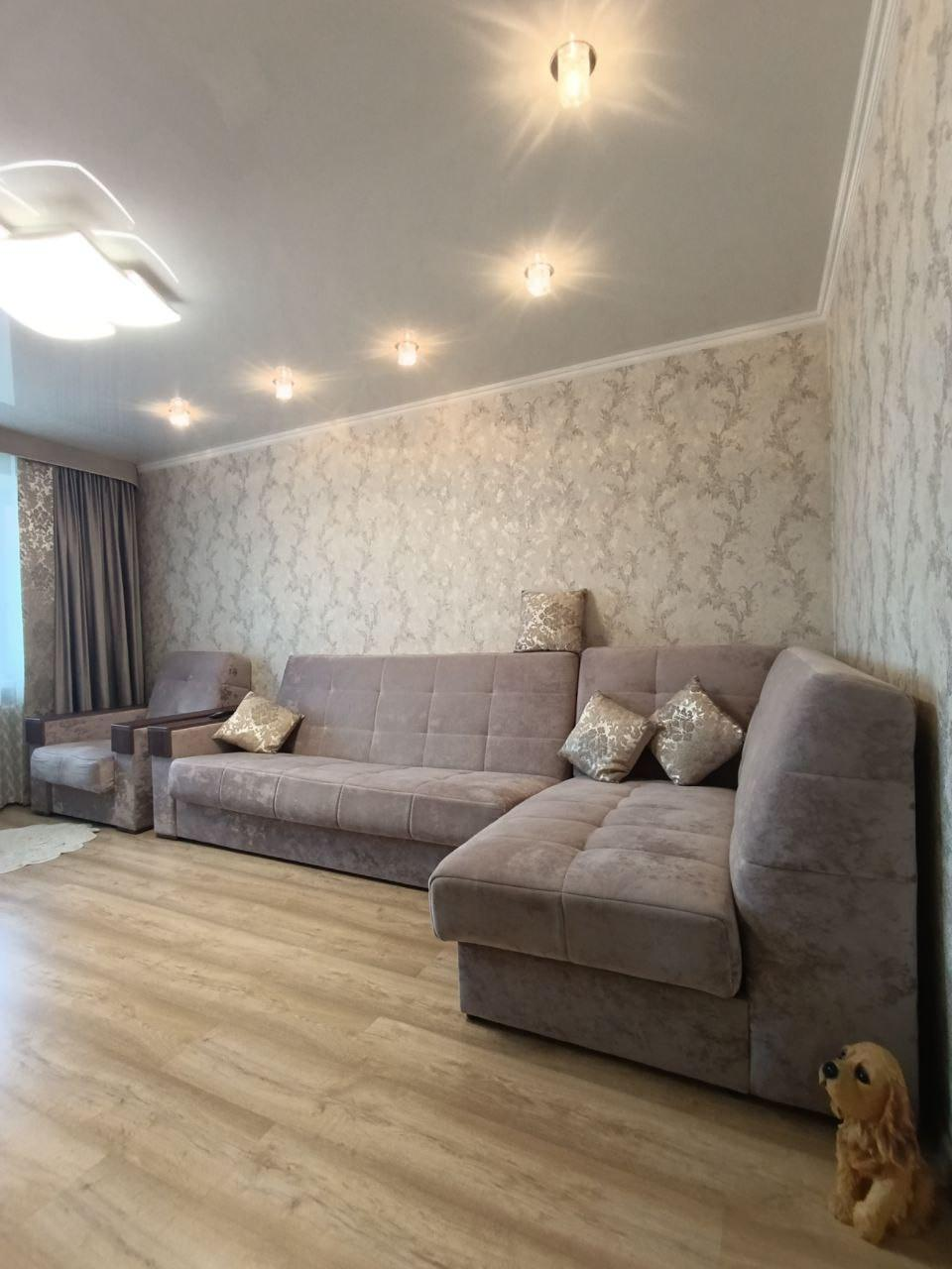 В квартире сделан современный ремонт.На стенах стильные обои.На полу - ламинат.Потолки натяжные .Установлены качественные пластиковые окна.Межкомнатные двери хорошего качества.Застеклённая лоджия.Раздельный санузелВ подарок остаётся: кухонный гарнитур, прихожая, спальня.Большая автопарковка во дворе дома,Детская площадка.