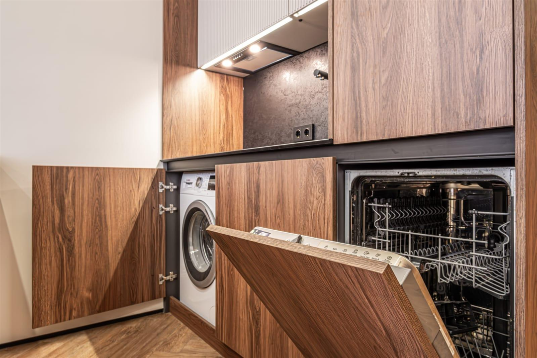 Квартира отлично оснащена техникой: встроенные : холодильник, духовка, микроволновка, посудомойка, измельчитель, стиралка, индукционная плита, сплит система.