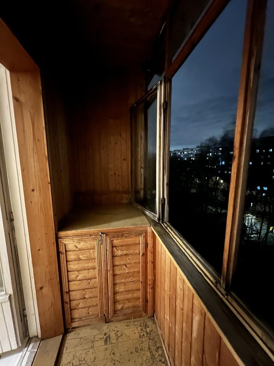 В квартире есть застекленный балкон со встроенными шкафами.