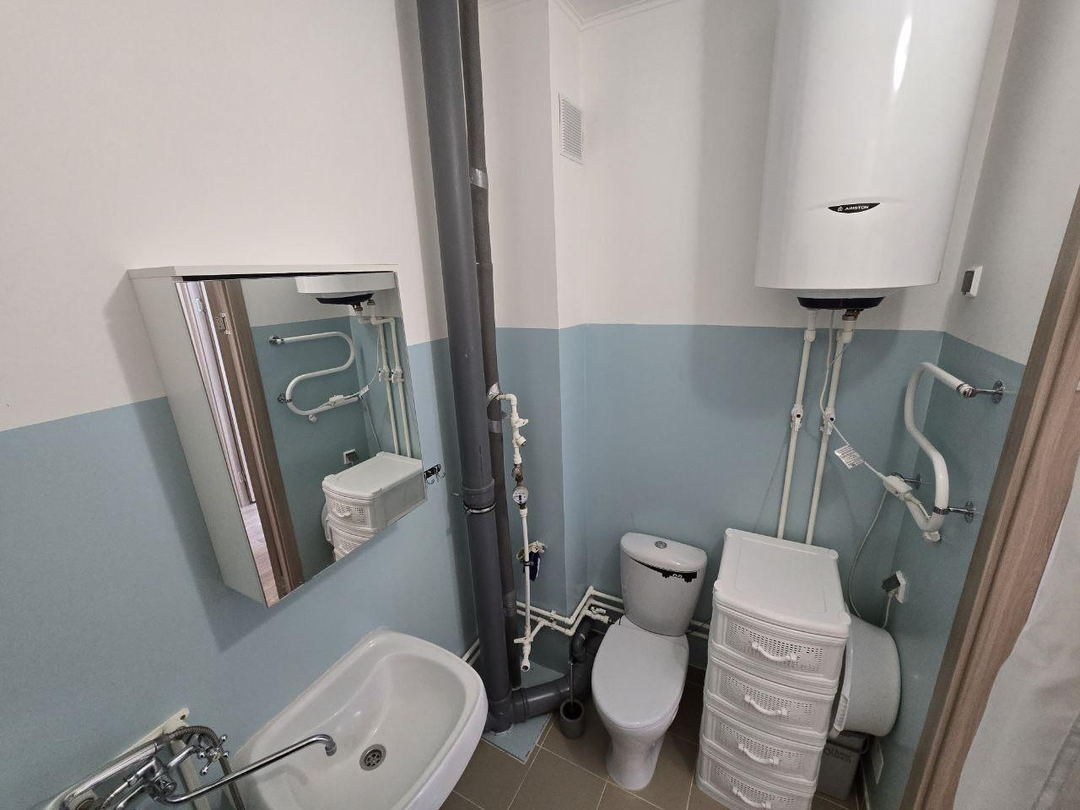 Что уже сделано:поклеены обои под покраску (стены окрашены в белый цвет) — визуально расширяют пространство;установлены пластиковые окна — тепло зимой и прохладно летом;постелен прочный линолеум в комнатах и на кухне — практично и долговечно;обновлена сантехника — всё работает безупречно;смонтированы светодиодные светильники — экономят электричество и создают уютную атмосферу.