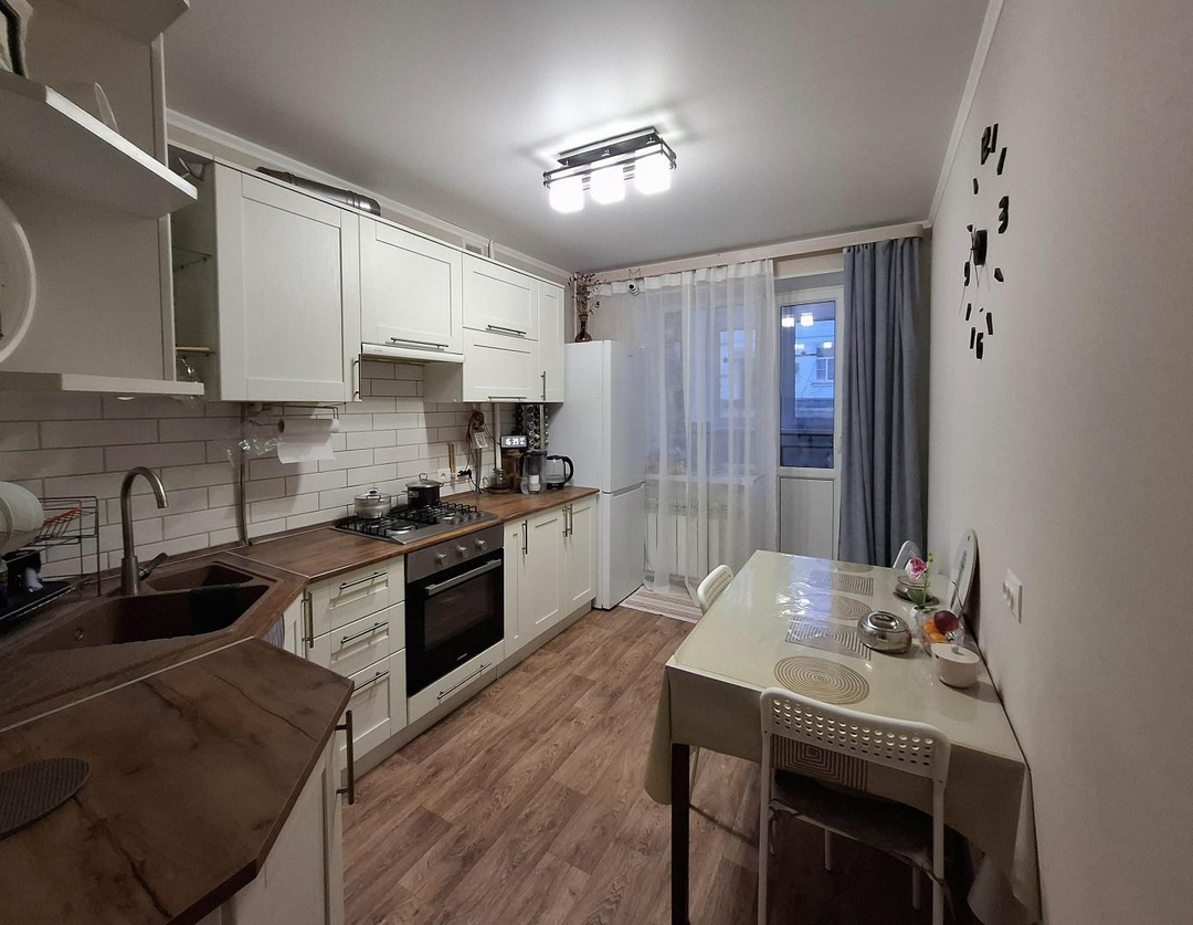 Просторные изолированные комнаты позволяют удобно организовать пространство для семьи. Большая кухня с лоджией длиной 7 метров предоставляет дополнительную площадь для семейного досуга. Лоджия полностью остеклена, что обеспечивает сохранение тепла зимой и прохлады летом.