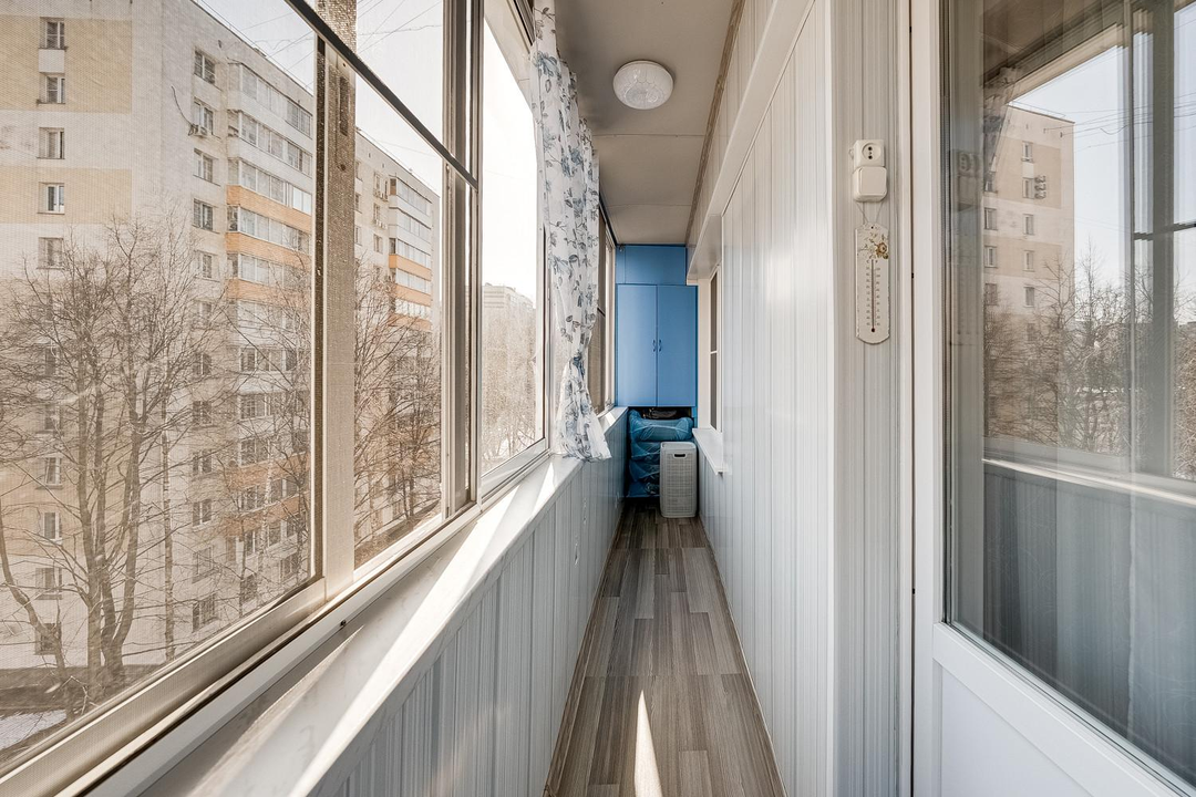 Преимуществом квартиры является большая лоджия с местом для хранения вещей.