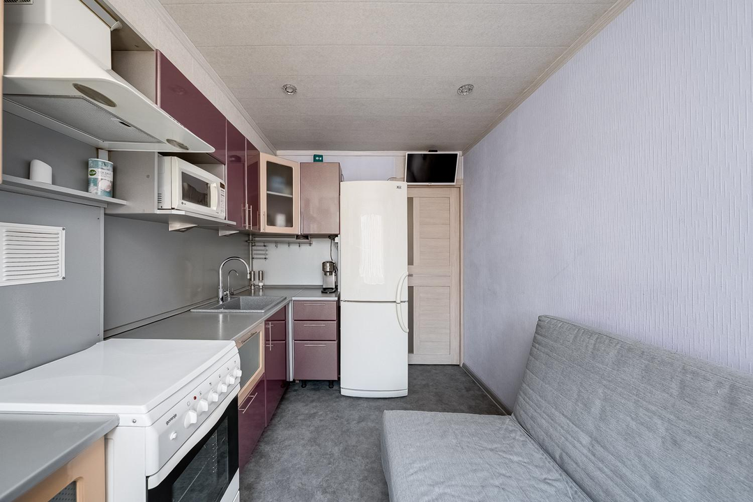 - кухонный гарнитур (в гарнитуре встроен обратный осмос — это наиболее совершенная технология очистки воды, а также накопительный водонагреватель на 30 литров на период отключения горячей воды);