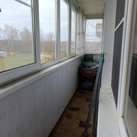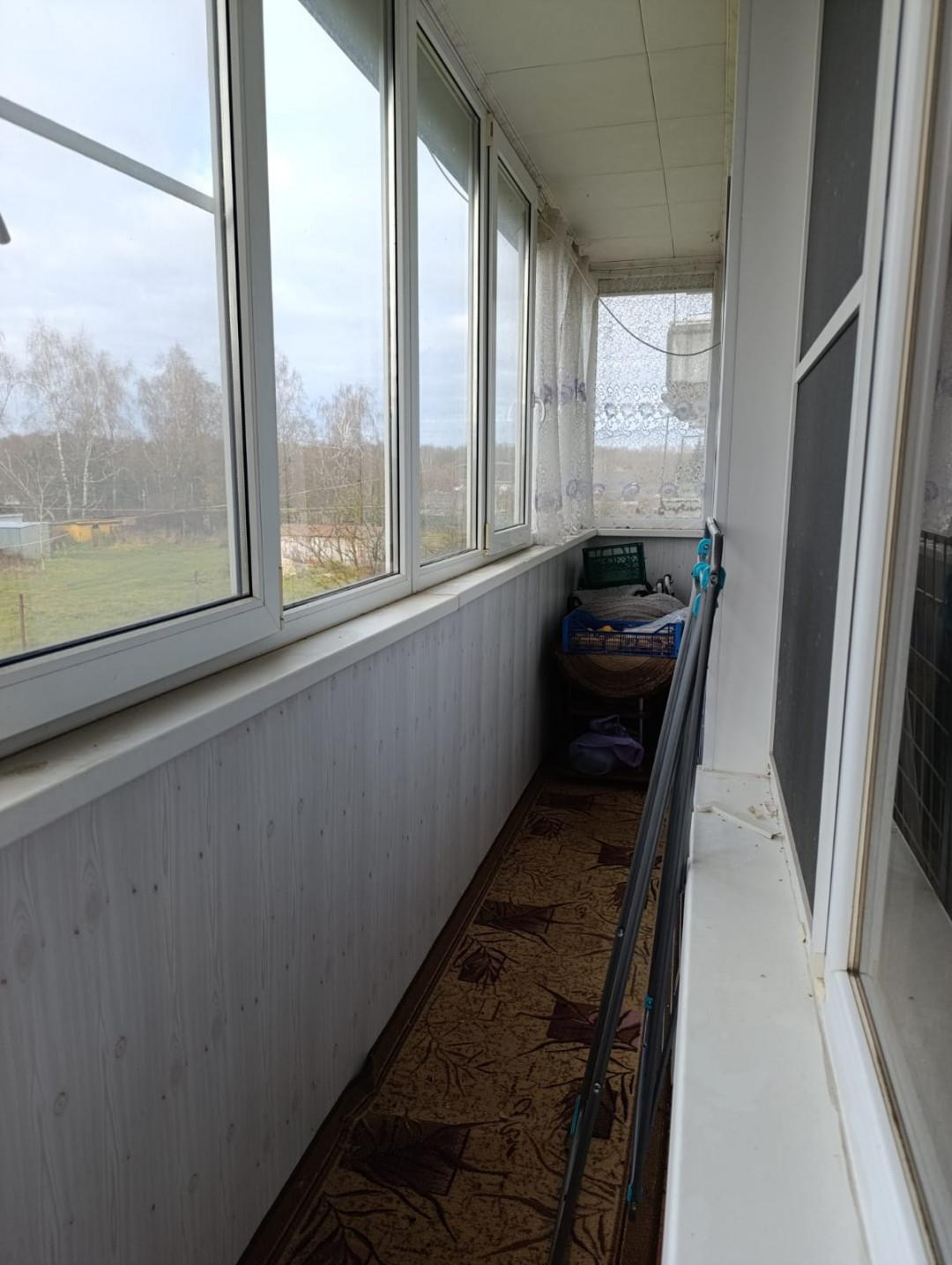 Длинный застекленный балкон, выход на него с двух комнат.
