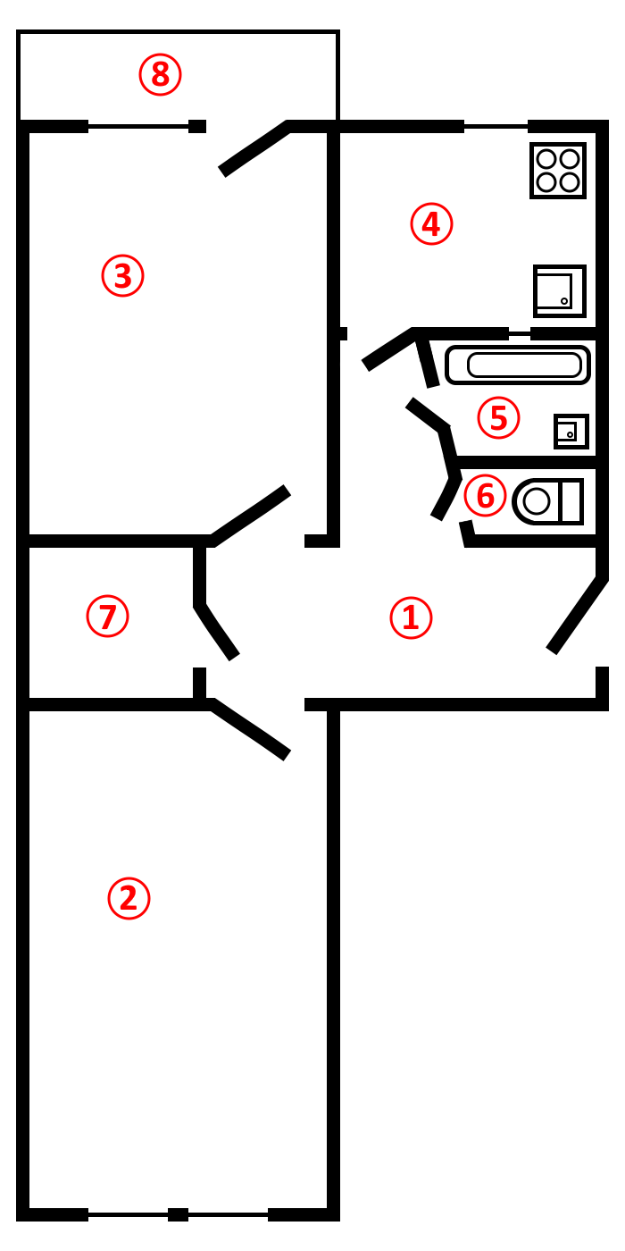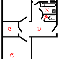 Характеристики:общая площадь — 48 м2;жилая площадь — 33 м2;кухня — 6 м2;санузел раздельный;комнаты изолированные;балкон застеклён (столярка).