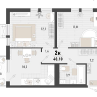2-комнатная 48.1 м2 в ЖК undefined корпус null этаж 10