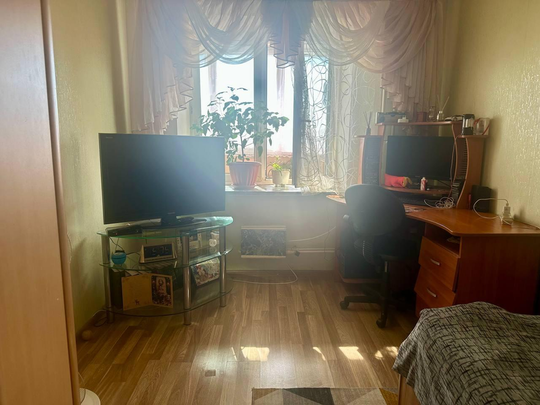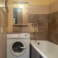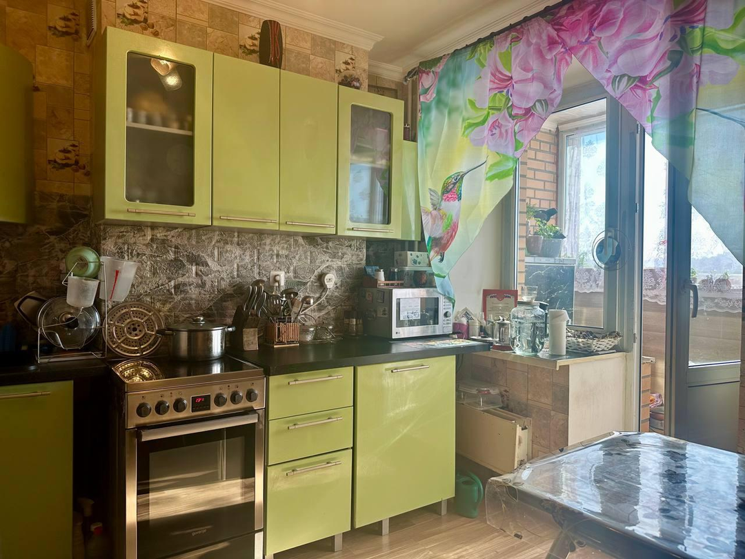 - остается мебель: кухонный гарнитур, холодильник, электрическая плита, микроволновая печь, кровать, шкаф-купе, журнальный столик, тумбочка, стол, стиральная машина, прихожая,