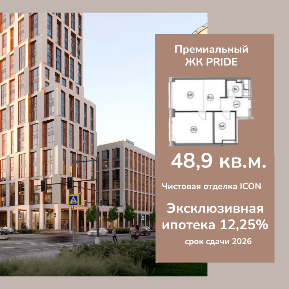 Уникальное предложение! Продаётся по переуступке права требования просторная 2-комнатная квартира евроформата в элитном жилом комплексе «PRAIDE».