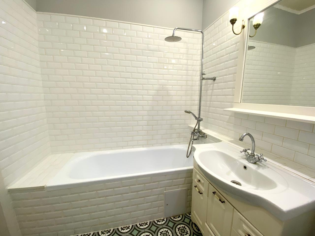 Дизайнерский ремонт в классическом стиле, квартира тёплая и светлая, оснащена мебелью и бытовой техникой.