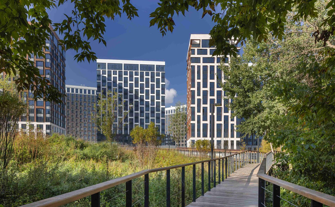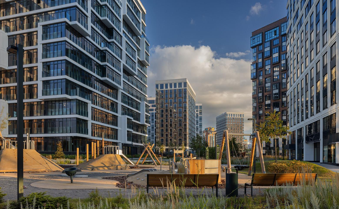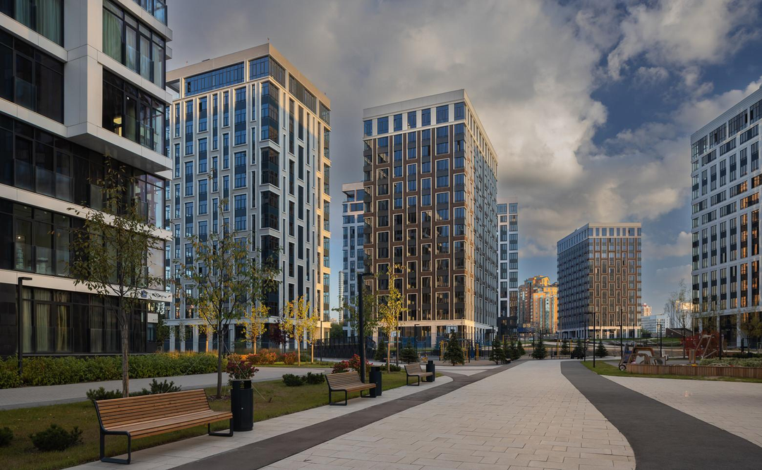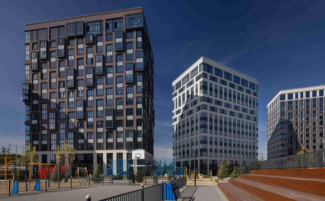-Развитая внутренняя инфраструктура: кафе, магазины, фитнес‑центр, детские площадки.