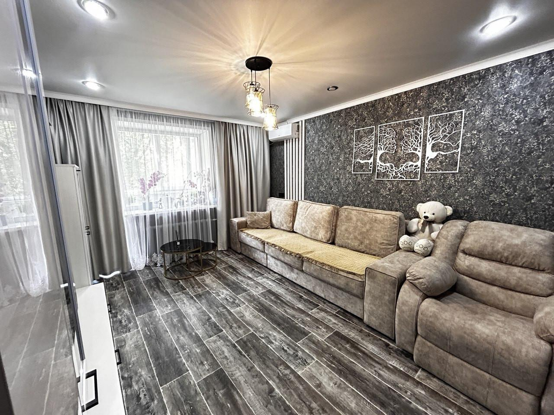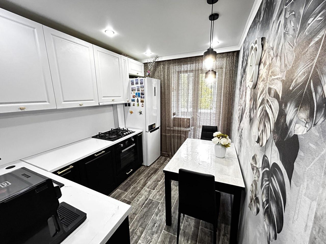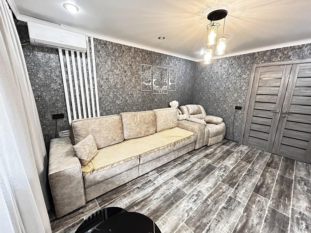 Квартира теплая, уютная, сделан свежий ремонт, остается встроенный кухонный гарнитур с техникой, кондиционер, в прихожей шкаф-купе.