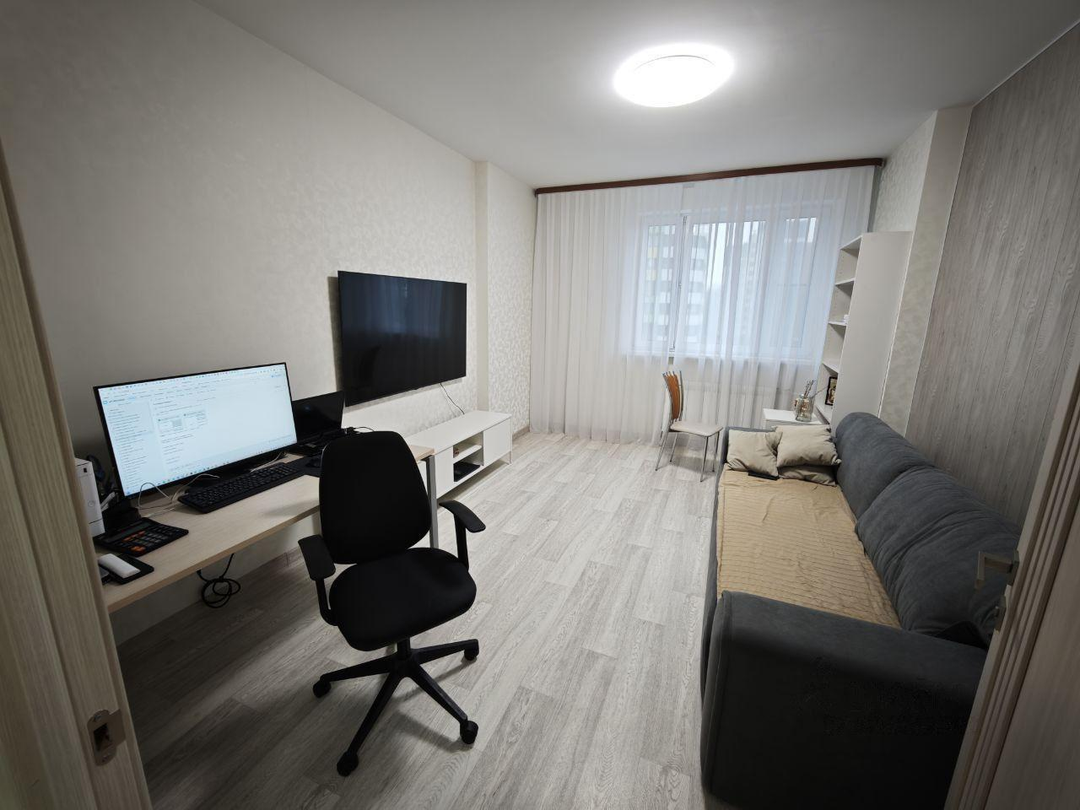 изолированный просторный, светлый зал. светлая спальня, отдельная гардеробная, раздельный санузел (ванная и туалет отдельно, в ванной установлена стиральная машина, в туалете есть дополнительная раковина),