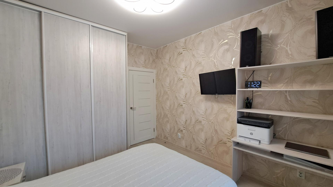 Квартира в отличном состоянии, сделан полностью евроремонт из качественных материалов. Удобная планировка, комнаты раздельные, просторная кухня, большой коридор. Комфортный 3-й этаж. Под кварц винилом на полах везде сделана полусухая стяжка. Поменяна проводка по всей квартире и выведено на балкон освещение и розетки. Везде натяжные потолки и пластиковые окна. Санузел в кафеле. Вся встроенная мебель остаётся. В туалете установлена инсталляция и гигиенический душ.