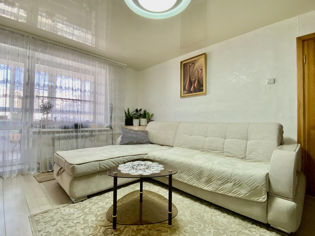 OПИCAHИE:Идеально подходит для семьи с детьми или для тех, кто ценит пространство и комфорт.Квартира очень теплая и светлая, что особенно важно в нашем климате.Планировка квартиры – очень удобная, комнаты изолированы. На обе стороны.Санузел совмещенный, в плитке.Соседи замечательные, Это создает ощущение дружной и безопасной обстановки.