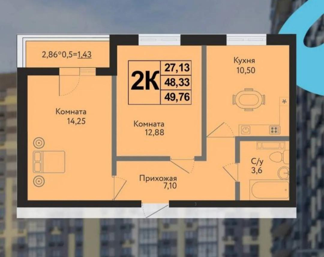 • Общая площадь 49,8 м²